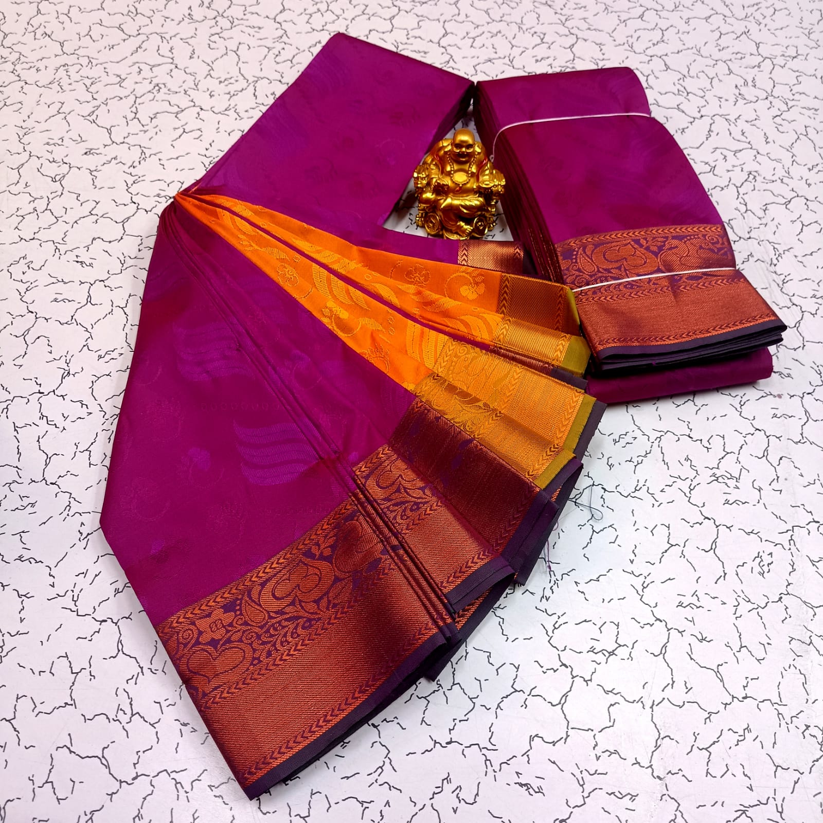 Color: Deep purple with orange-gold Zari pallu